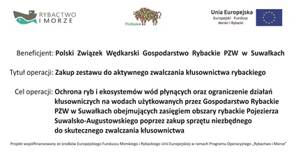 Operacja realizowana jest w Polskim Związku Wędkarskim w Warszawie Gospodarstwie Rybackim PZW w Suwałkach.